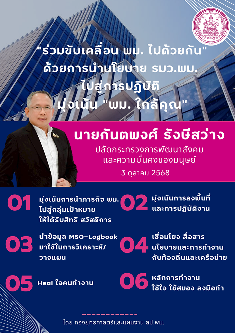วีดีโอแนะนำบทบาทหน้าที่ของกระทรวงพัฒนาสังคมเเละความมั่นคงของมนุษย์ (พม.)Banner Link
